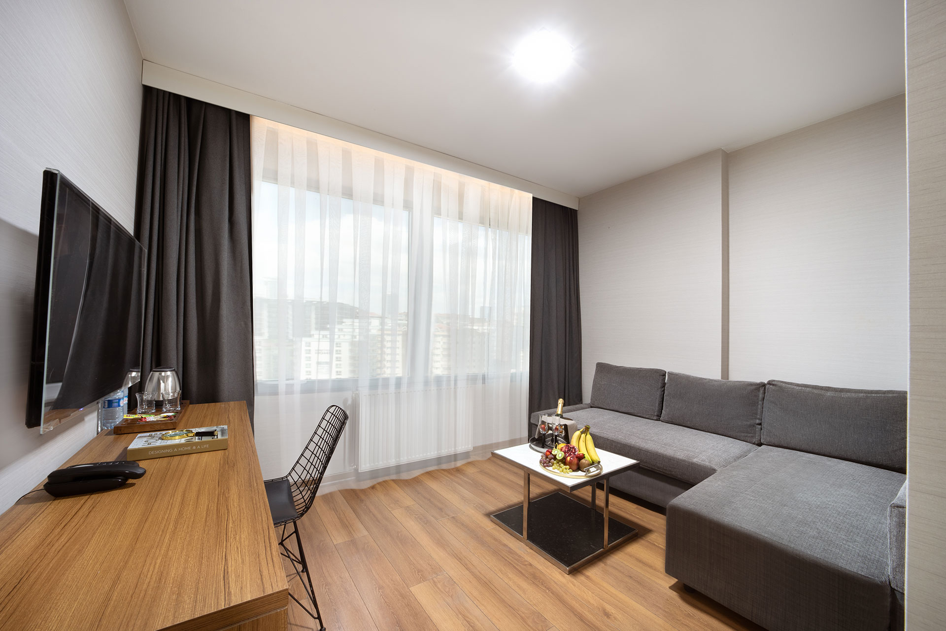 Junior Suite 35 m² büyüklüğe sahiptir. Tek odadan oluşan süitimizde çift kişilik yatak, özel dizayn edilmiş gardırop, SMART TV, mini buzdolabı ve Balkon bulunmaktadır. 2 kişiye kadar konaklayabileceğiniz ayrıcalıklı süit odalarımızdan biri olan Junior Suite tek odalı plana sahip olmasına rağmen oldukça ferah, geniş bir alana sahiptir. Ataşehir’de apart otel deneyimini merkezi konum ve konforla birleştirmek isterseniz Nish Suit Ataşehir’de Junior Suite ilk tercihiniz olabilir.